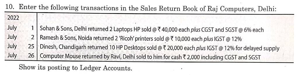 Here is the Solution of Q 10 Accounting for Goods and Services Tax (GST) TS Grewal Class 11 Accountancy 2022-23 for the CBSE Board.