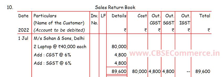 Solution of Question Number 10 Accounting for Goods and Services Tax (GST) TS Grewal CBSE 2022-23 Edition
