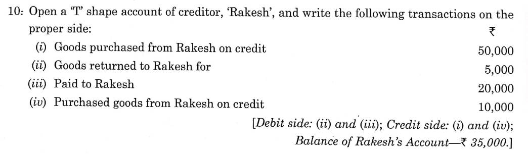 Solution of Question Number 10 Rules of Debit and Credit TS Grewal CBSE 2022-23 Edition