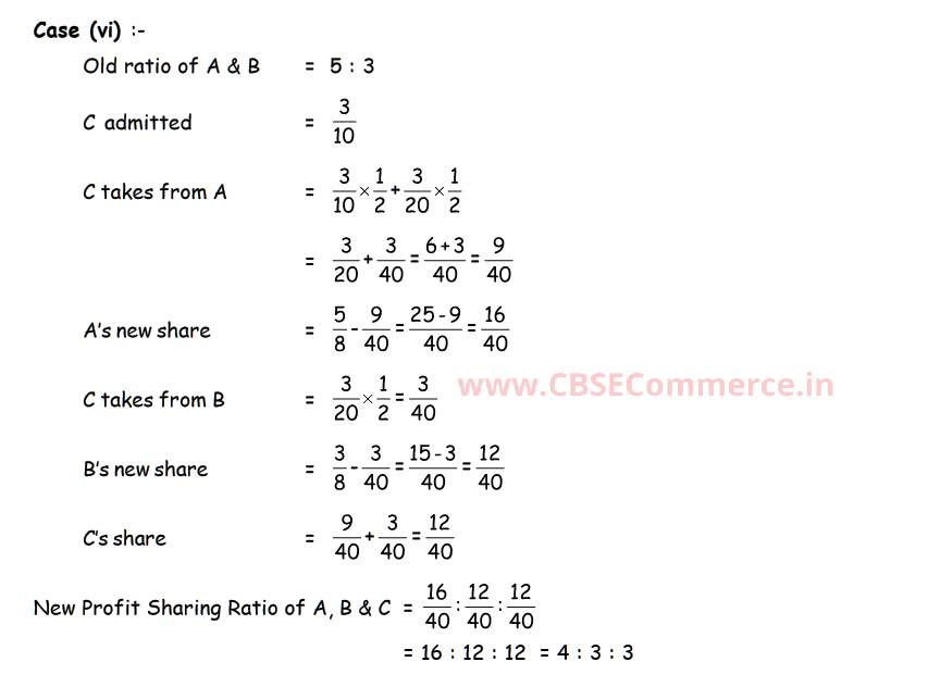 New Profit Sharing Ratio of A, B, & C = 6:3:3 =2:1:1