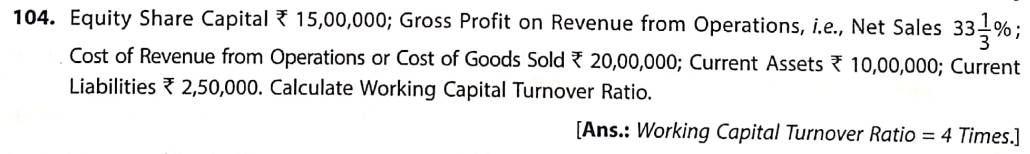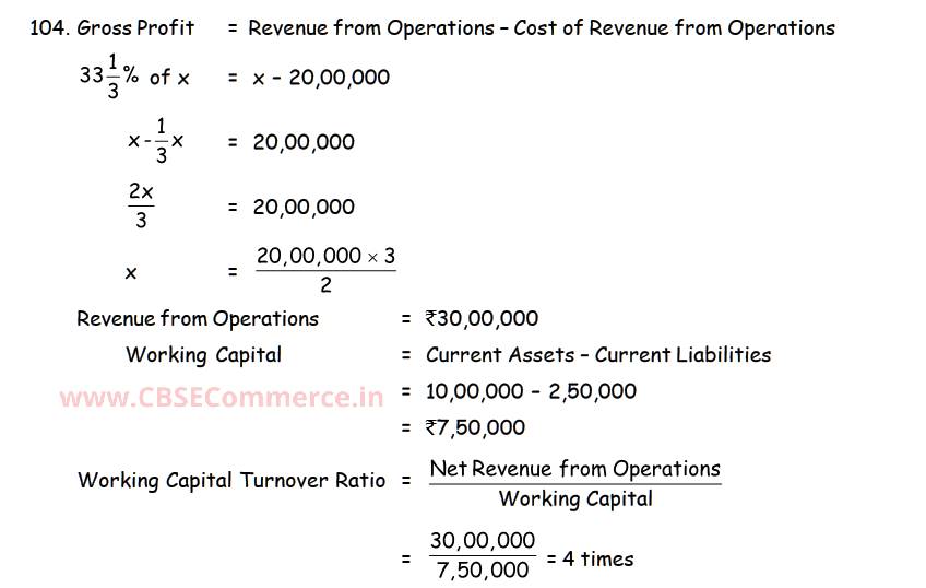 Solution of Question Number 104 Accounting Ratios TS Grewal CBSE 2022-23 Edition