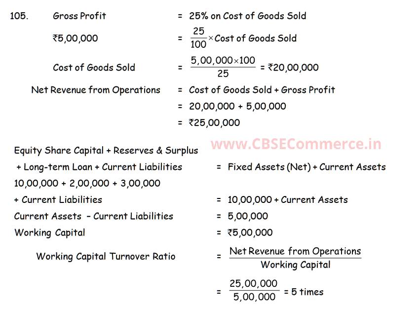 Solution of Question Number 105 Accounting Ratios TS Grewal CBSE 2022-23 Edition
