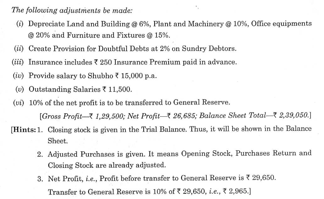 Solution of Question Number 11 Adjustments in Preparation of Financial Statements TS Grewal CBSE 2022-23 Edition