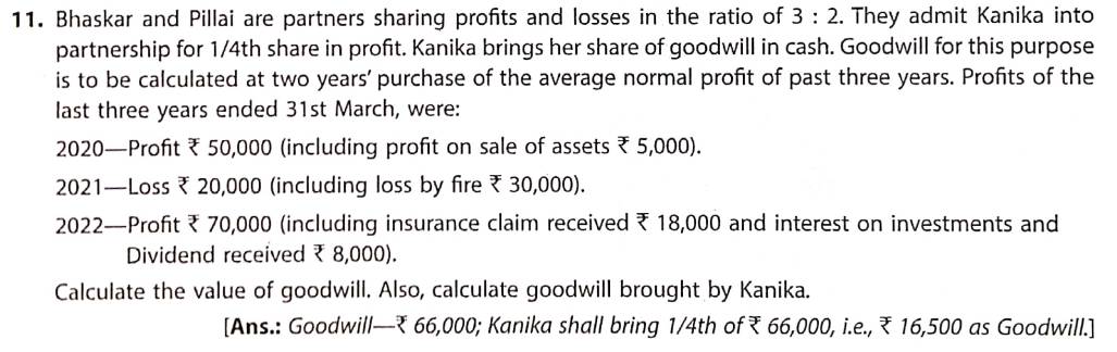 Solution of Question Number 11 Goodwill TS Grewal CBSE 2022-23 Edition