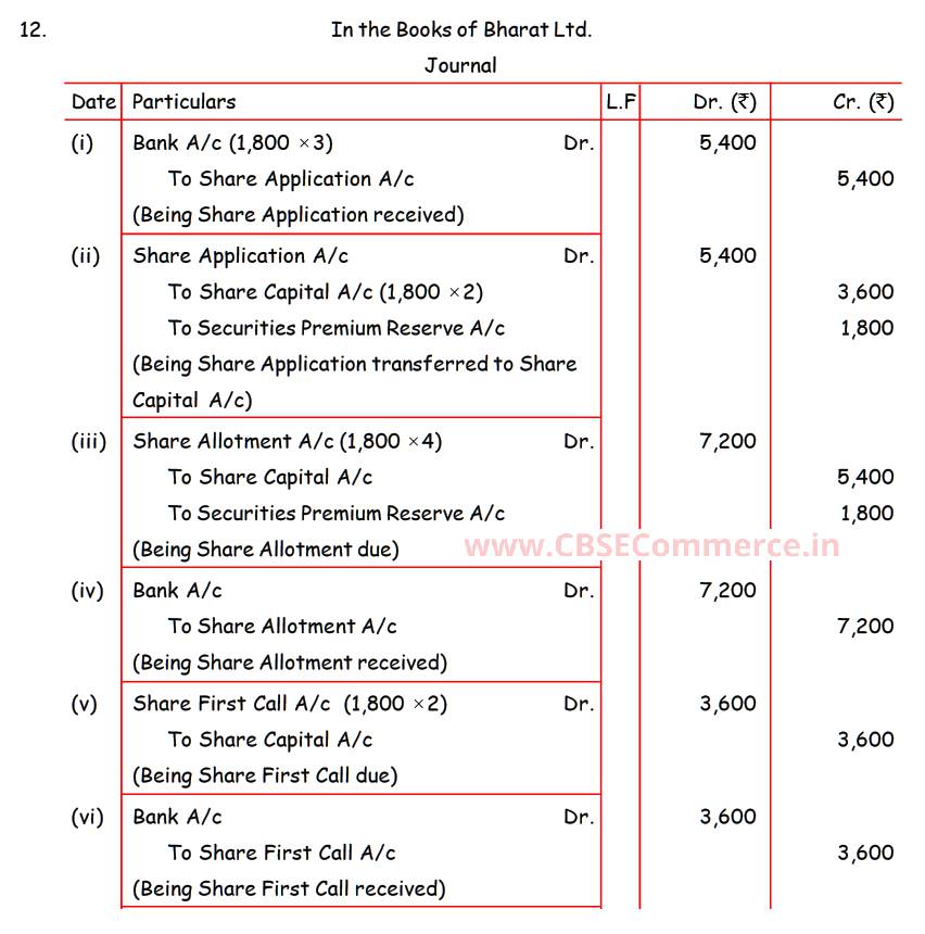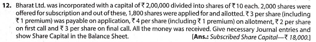 Solution of Question Number 12 Accounting for Share Capital TS Grewal CBSE 2022-23 Edition