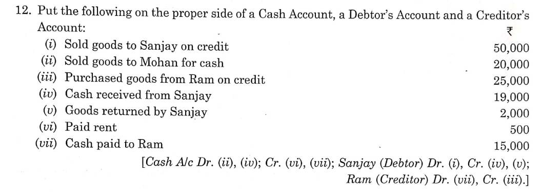 Solution of Q 12 Accounting Procedures-Rules of Debit and Credit TS Grewal Class 11 (2022-23) CBSE