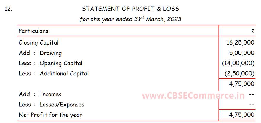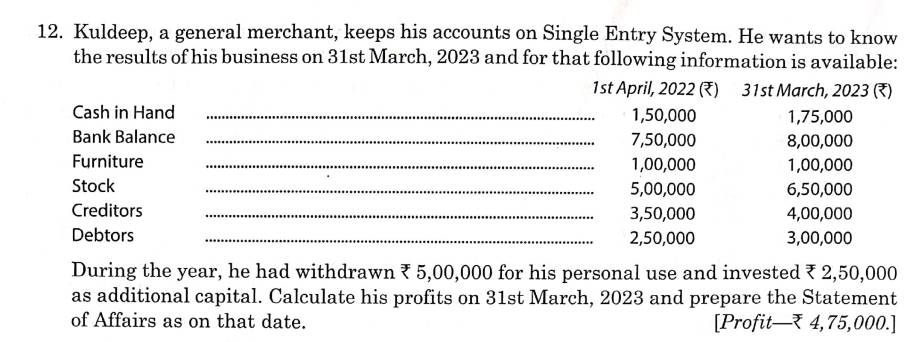Solution of Question Number 12 Accounts from Incomplete Records-Single Entry System TS Grewal CBSE 2023-24 Edition