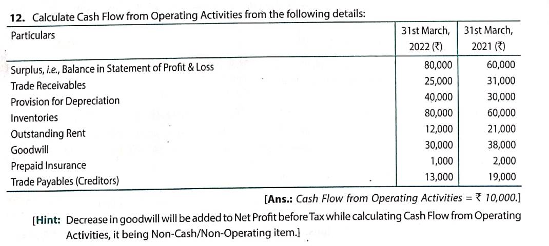 Solution of Question Number 12 Cash Flow Statements TS Grewal CBSE 2022-23 Edition
