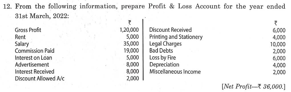 Solution of Question Number 12 Financial Statements of Sole Proprietorship TS Grewal CBSE 2022-23 Edition