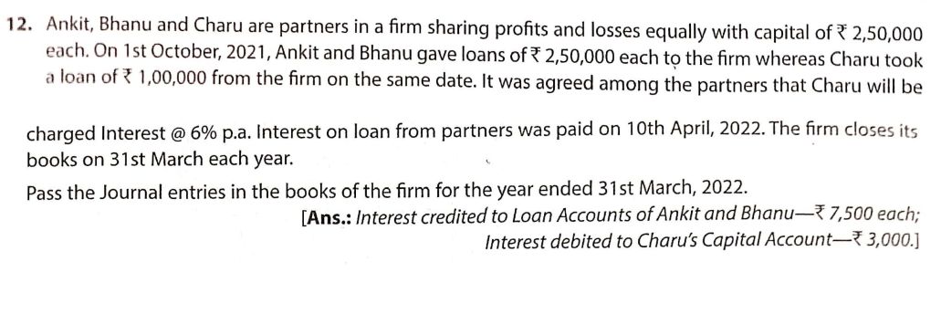 Solution of Q 12 Fundamentals of Partnership Firm TS Grewal 2022-23 [CBSE]