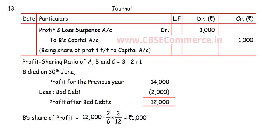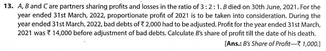 Solution of Question Number 13 Death of a Partner TS Grewal CBSE 2022-23 Edition