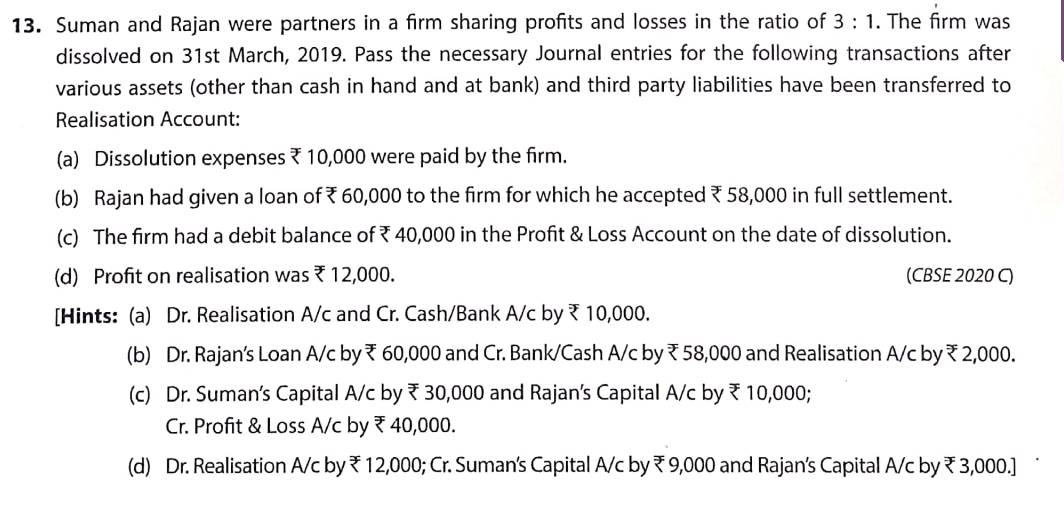 Solution of Question Number 13 Dissolution of a Partnership Firm TS Grewal CBSE 2022-23 Edition
