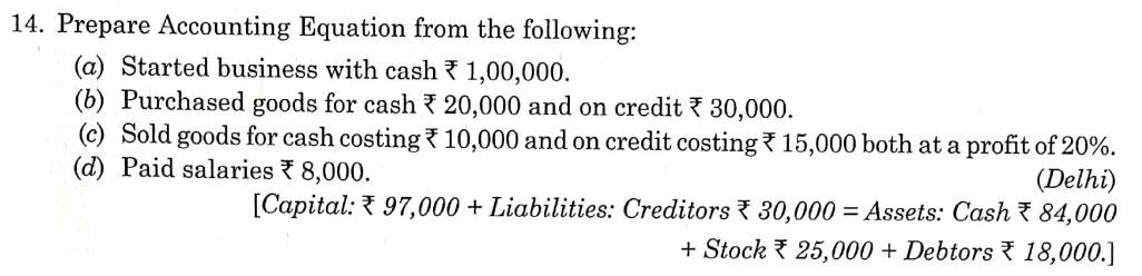 Here is the Solution of Q 14 Accounting Equation TS Grewal Class 11 Accountancy 2022-23 for the CBSE Board.