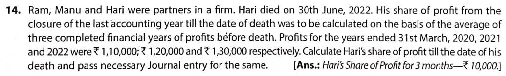 Solution of Question Number 14 Death of a Partner TS Grewal CBSE 2022-23 Edition