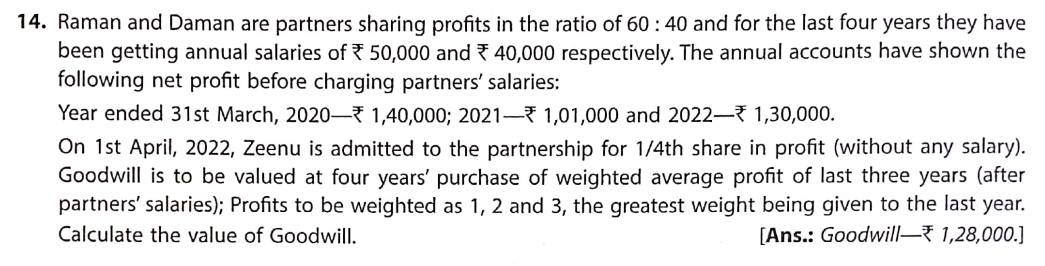Here is the Solution of Q 14 Goodwill TS Grewal Class 12 Accountancy 2022-23 for the CBSE Board.