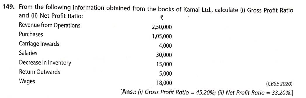 Solution of Q 149 Accounting Ratios TS Grewal 2022-23 [CBSE]
