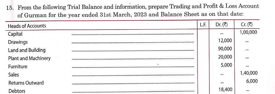 Here is the Solution of Q 15 Adjustments in Preparation of Financial Statements TS Grewal Class 11 Accountancy 2023-24 for the CBSE Board.