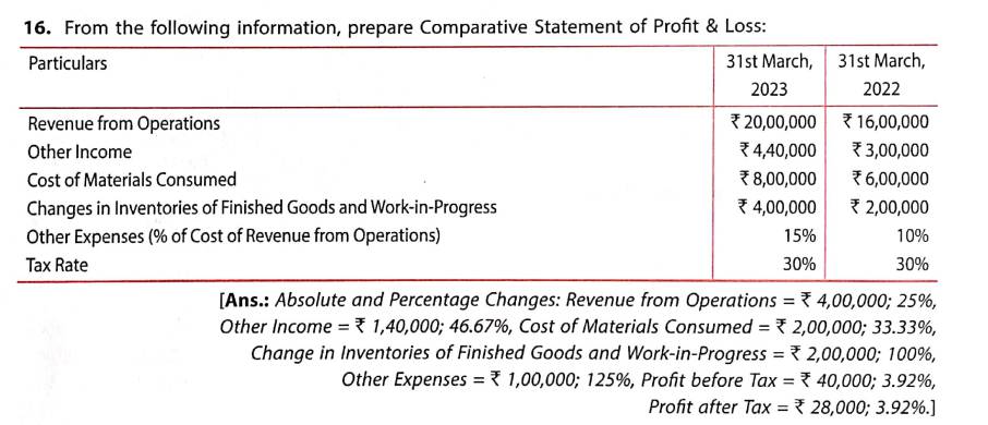 Solution of Q 16 Comparative and Common Size Statements TS Grewal 2023-24 [CBSE]