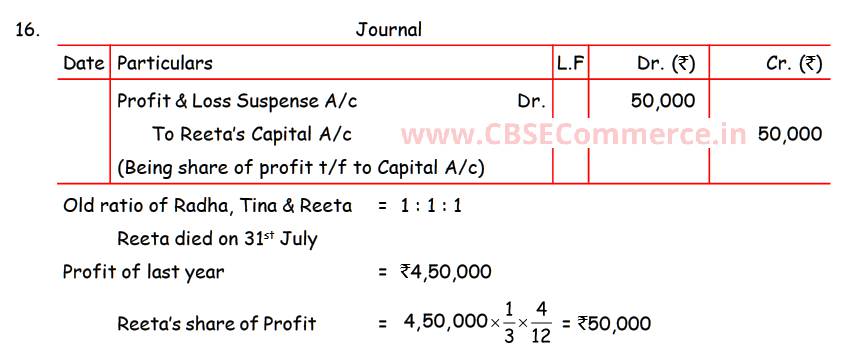 Solution of Question Number 16 Death of a Partner TS Grewal CBSE 2022-23 Edition