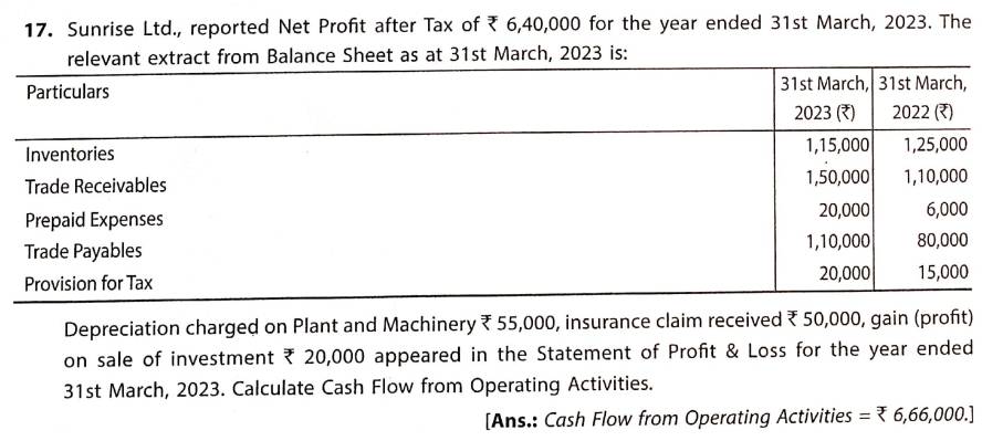 Solution of Question Number 17 Cash Flow Statements TS Grewal CBSE 2023-24 Edition