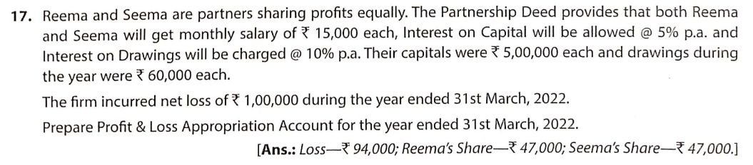 Solution of Question Number 17 of Accounting for Partnership Firms – Fundamentals TS Grewal CBSE 2022-23 Edition