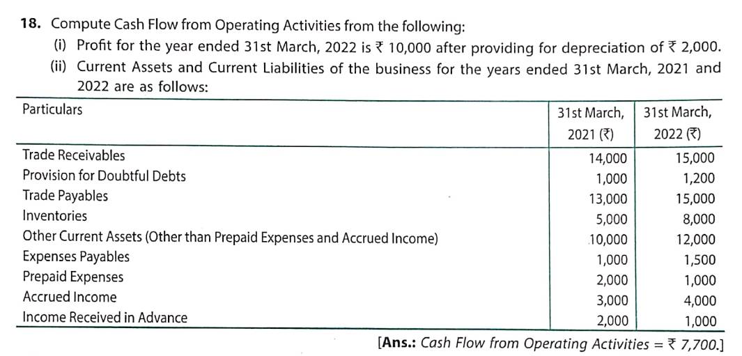 Solution of Question Number 18 Cash Flow Statements TS Grewal CBSE 2022-23 Edition
