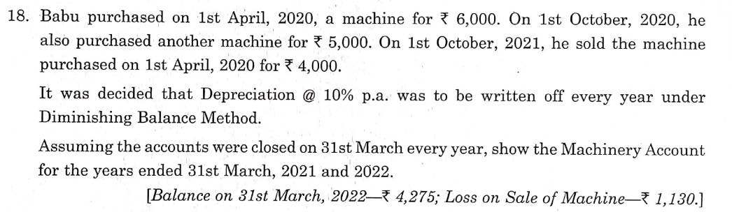 Solution of Question Number 18 Depreciation TS Grewal CBSE 2022-23 Edition
