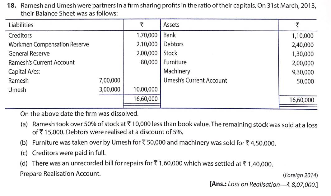 Solution of Question Number 18 Dissolution of a Partnership Firm TS Grewal CBSE 2022-23 Edition