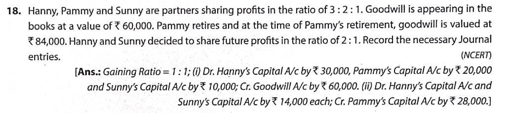 Solution of Question Number 18 Retirement of Partner TS Grewal CBSE 2022-23 Edition