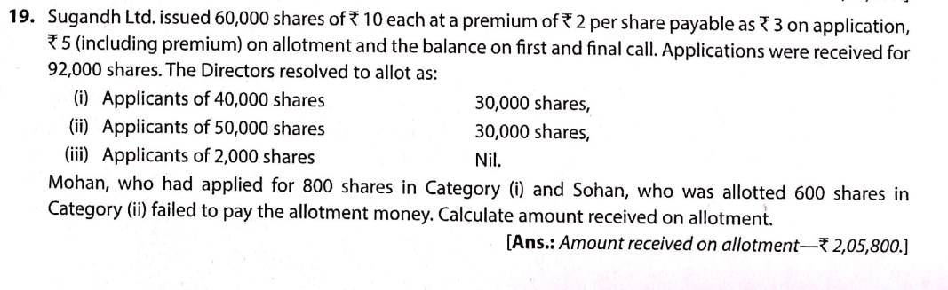 Solution of Question Number 19 Accounting for Share Capital TS Grewal CBSE 2022-23 Edition