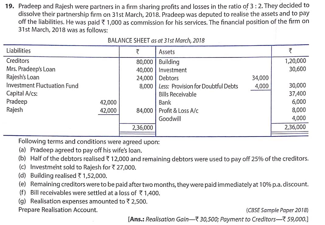 Solution of Question Number 19 Dissolution of a Partnership Firm TS Grewal CBSE 2022-23 Edition
