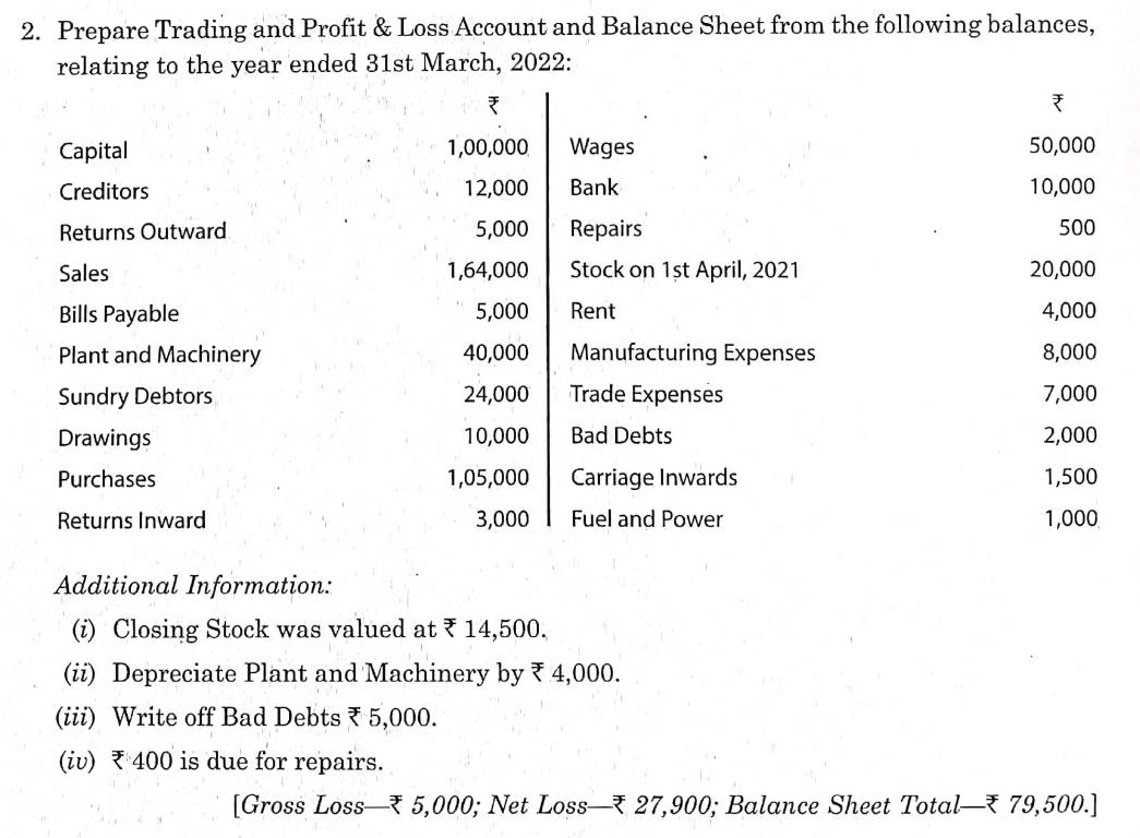 Here is the Solution of Q 2 Adjustments in Preparation of Financial Statements TS Grewal Class 11 Accountancy 2022-23 for the CBSE Board.