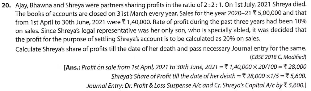 Solution of Question Number 20 Death of a Partner TS Grewal CBSE 2022-23 Edition