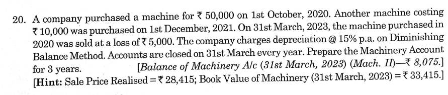 Solution of Question Number 20 Depreciation TS Grewal CBSE 2023-24 Edition