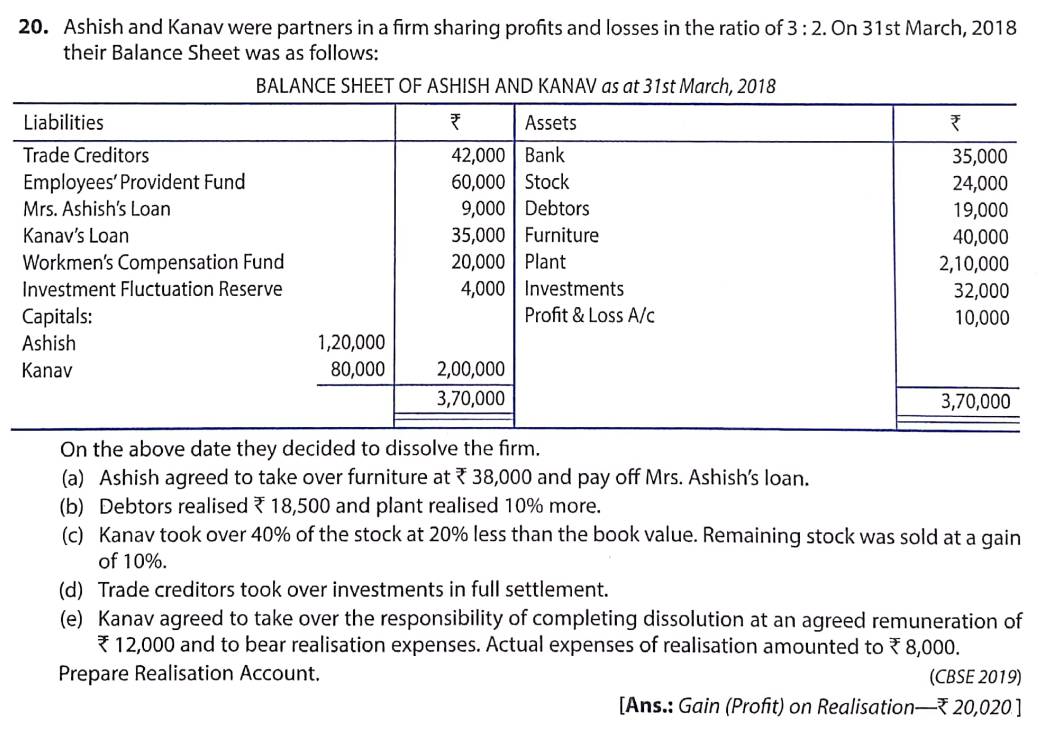 Solution of Question Number 20 Dissolution of a Partnership Firm TS Grewal CBSE 2022-23 Edition