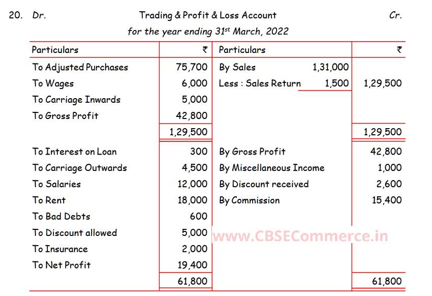 Solution of Question Number 20 Financial Statements of Sole Proprietorship TS Grewal CBSE 2022-23 Edition