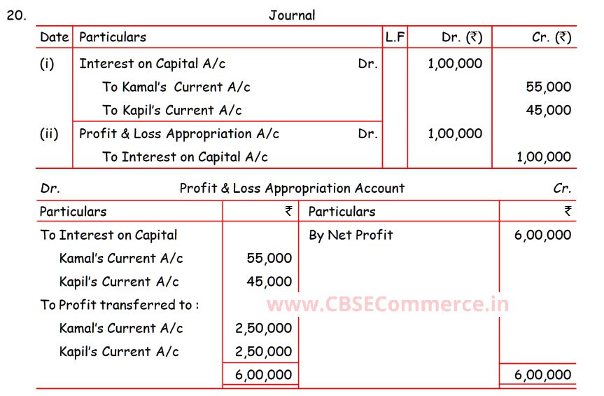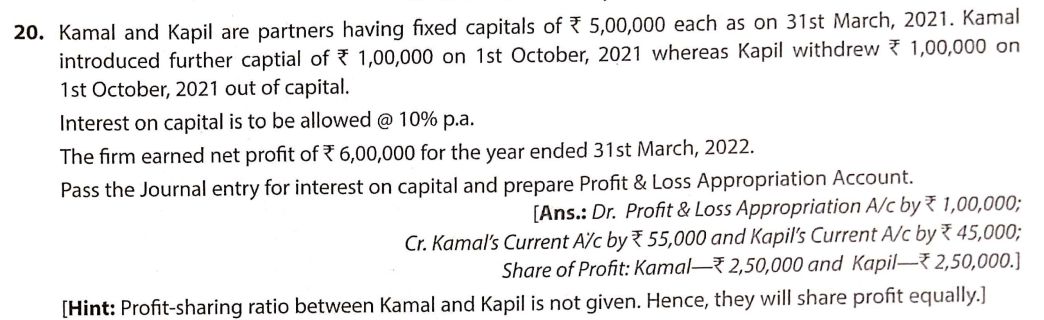 Solution of Question Number 20 of Accounting for Partnership Firms – Fundamentals TS Grewal CBSE 2022-23 Edition