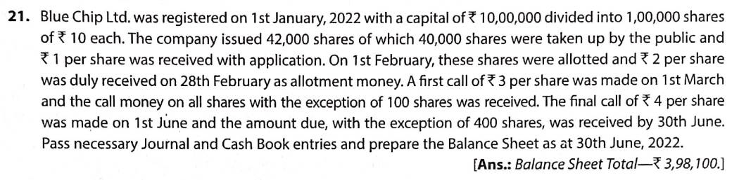 Solution of Q 21 Accounting for Share Capital TS Grewal 2022-23 [CBSE]