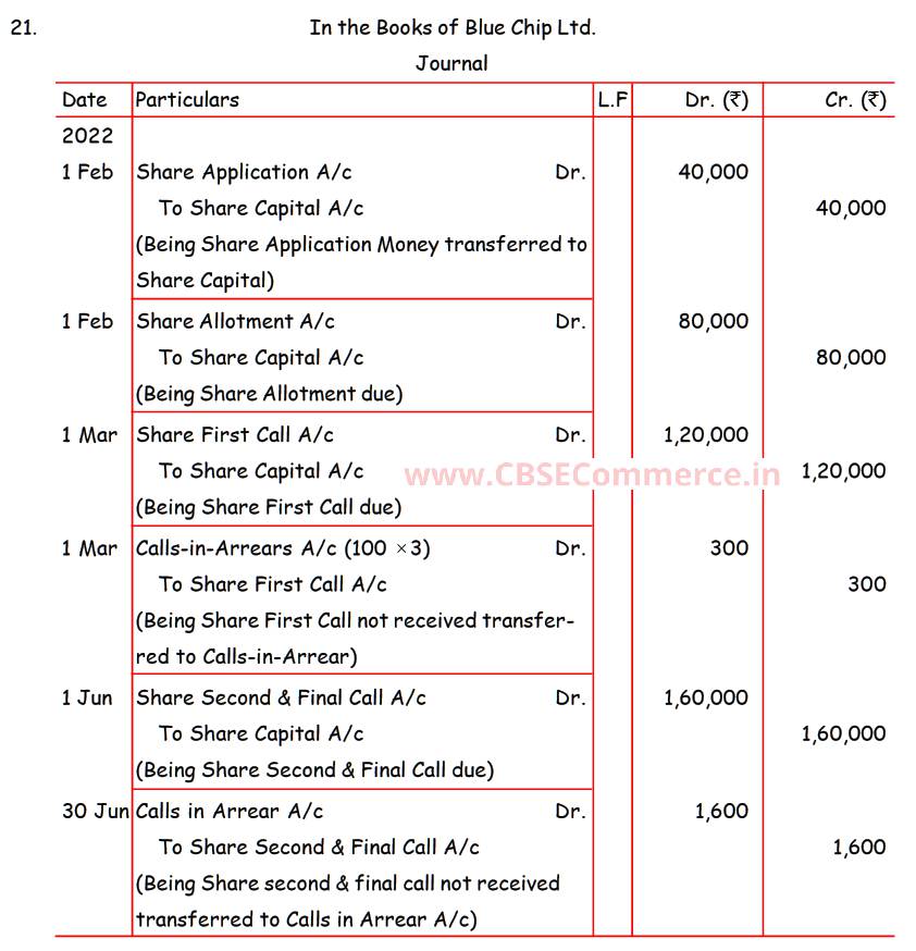 Solution of Question Number 21 Accounting for Share Capital TS Grewal CBSE 2022-23 Edition