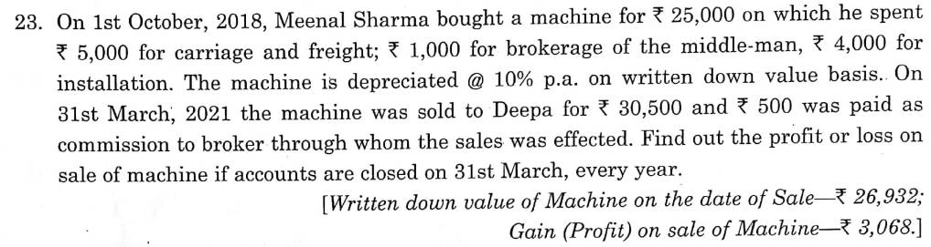 Solution of Question Number 23 Depreciation TS Grewal CBSE 2022-23 Edition