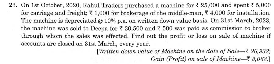 Solution of Question Number 23 Depreciation TS Grewal CBSE 2023-24 Edition