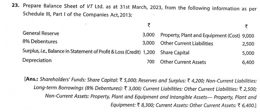 Solution of Question Number 23 Financial Statements of a Company TS Grewal CBSE 2023-24 Edition