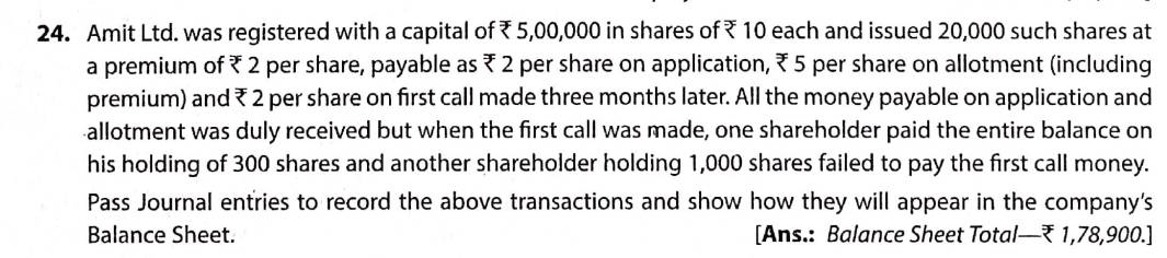 Solution of Question Number 24 Accounting for Share Capital TS Grewal CBSE 2022-23 Edition