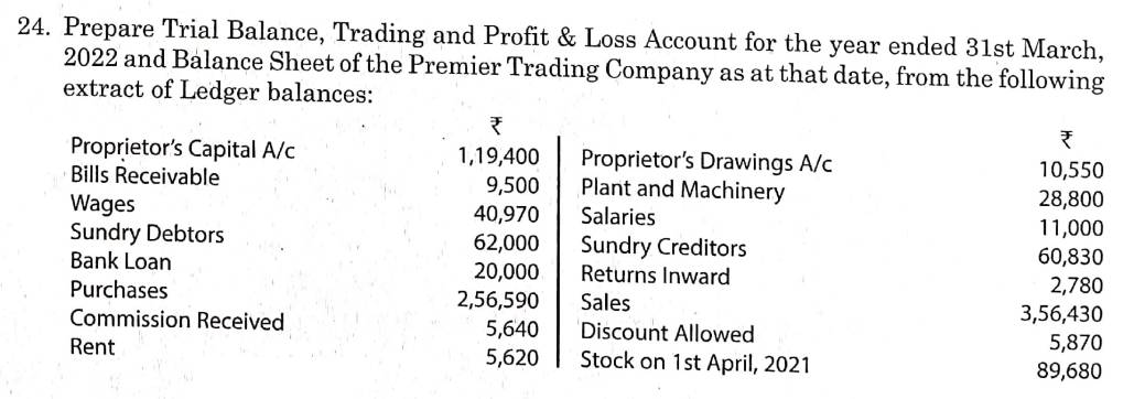 Here is the Solution of Q 24 Financial Statements of Sole Proprietorship TS Grewal Class 11 Accountancy 2022-23 for the CBSE Board.