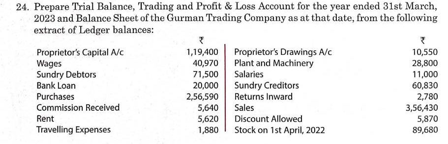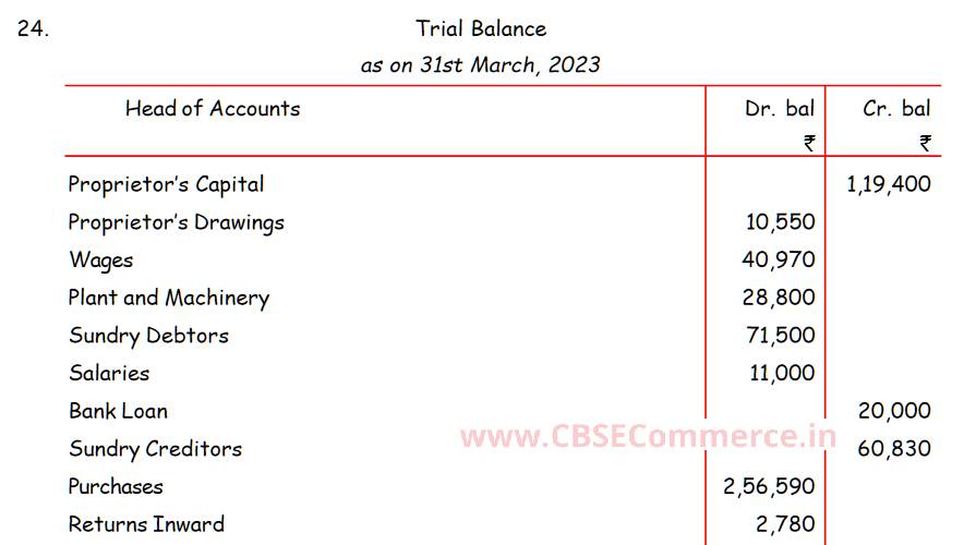 Here is the Solution of Q 24 Financial Statements of Sole Proprietorship TS Grewal Class 11 Accountancy 2023-24 for the CBSE Board.