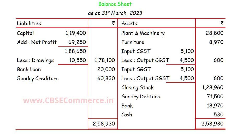 Solution of Question Number 24 Financial Statements of Sole Proprietorship TS Grewal CBSE 2023-24 Edition