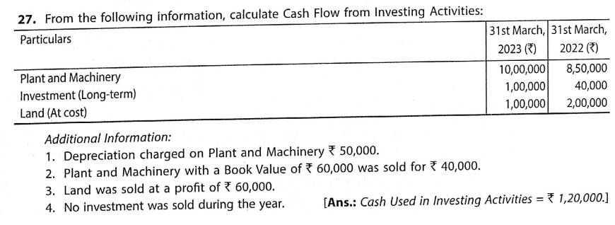 Solution of Question Number 27 Cash Flow Statements TS Grewal CBSE 2023-24 Edition