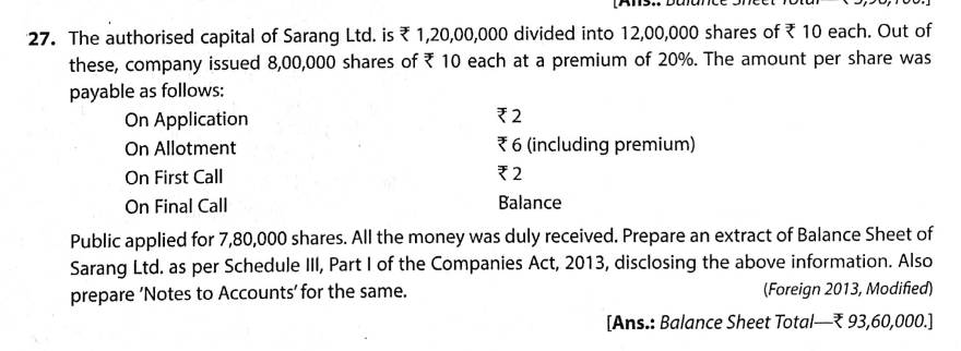 Solution of Question Number 27 Share Capital TS Grewal CBSE 2023-24 Edition