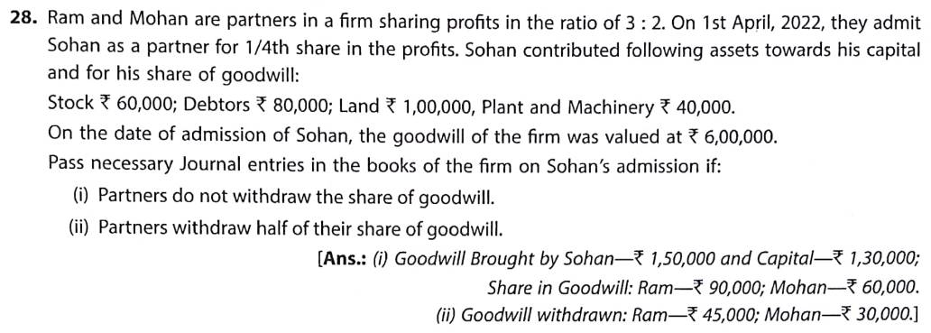 Solution of Question Number 28 Admission of Partner TS Grewal CBSE 2022-23 Edition