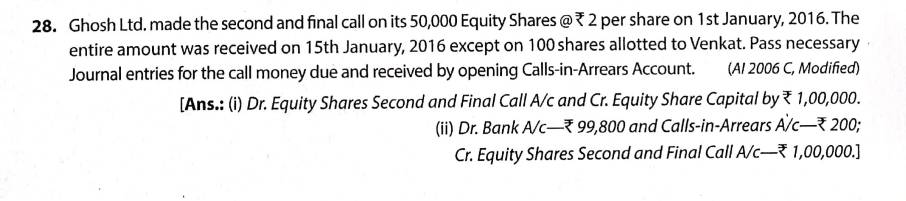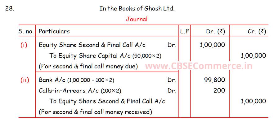 Solution of Question Number 28 Share Capital TS Grewal CBSE 2023-24 Edition